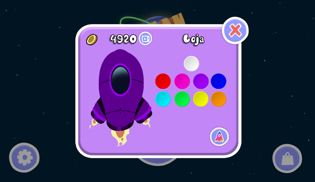 Além da loja de chapéus, o jogador também poderá personalisar as cores de sua nave, por apenas Zero reais (por pouco tempo, uahhahahahahahaha…)