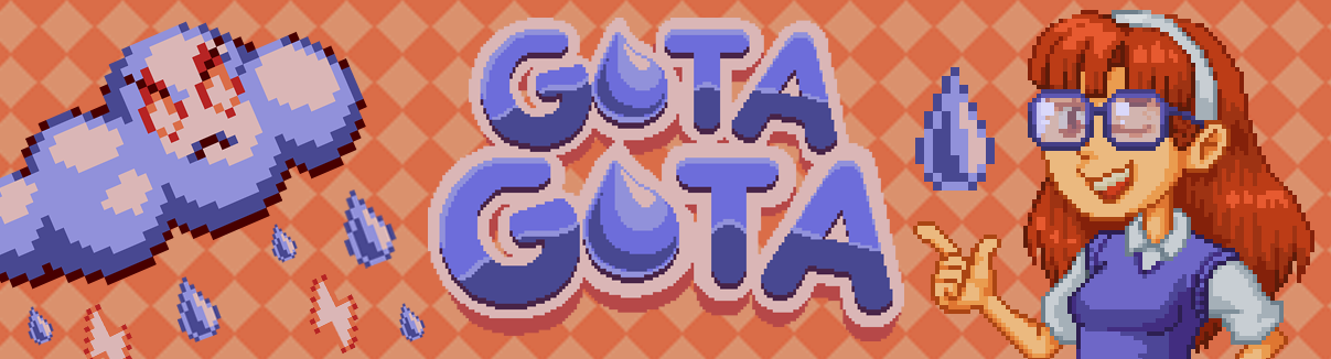 Neste jogo é possível controlar a personagem “Lili”, onde a mesma precisa coletar gotas de chuva e levar a caixa d’água. Neste quesito, pretendemos desenvolver a consciência ambiental no jogador, de que é necessário para uma vida mais sustentável a economia de água e a reutilização da água da chuva. Gota Gota é um jogo de Arcade de estilo 2D, foi desenvolvido em Pixel, utilizando referencias de jogos como “Game Watch Gallery 4 - Fire” (Game Boy Advance) e “Drop” (Android). A cada fase completada no jogo, a velocidade em que as gotas caem, acelera, assim como, os inimigos e obstaculos ficam mais difíceis de serem ultrapassados. Durante o jogo tambem aparecem “Power Ups”, cujas funções são facilitar um pouco a jogabilidade.